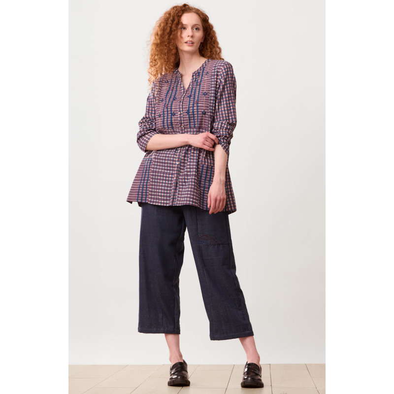 Our signature straight-leg pant in handwoven eco-friendly recycled-yarn denim is a versatile wardrobe staple. The medium-weight denim pairs effortlessly with everything! Designed in a pull-on style, it sits at the natural waist with an easy fit through the hip and thigh. Embroidered front seam detail and accents at the hem add subtle interest. A durable and sustainable choice, handwoven with recycled fibers that blend strength and eco-consciousness. The handwoven texture adds a unique artisanal touch, while the incorporation of recycled materials reduces waste.