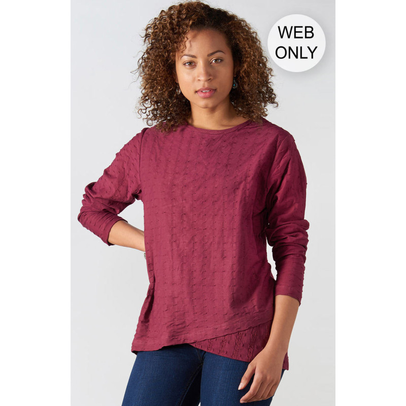 • Sherna Textured Knit Long-Sleeve Tee - Wineberry