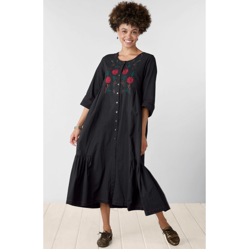 Shiroda Embroidered Organic Cotton Tiered Dress - Black
